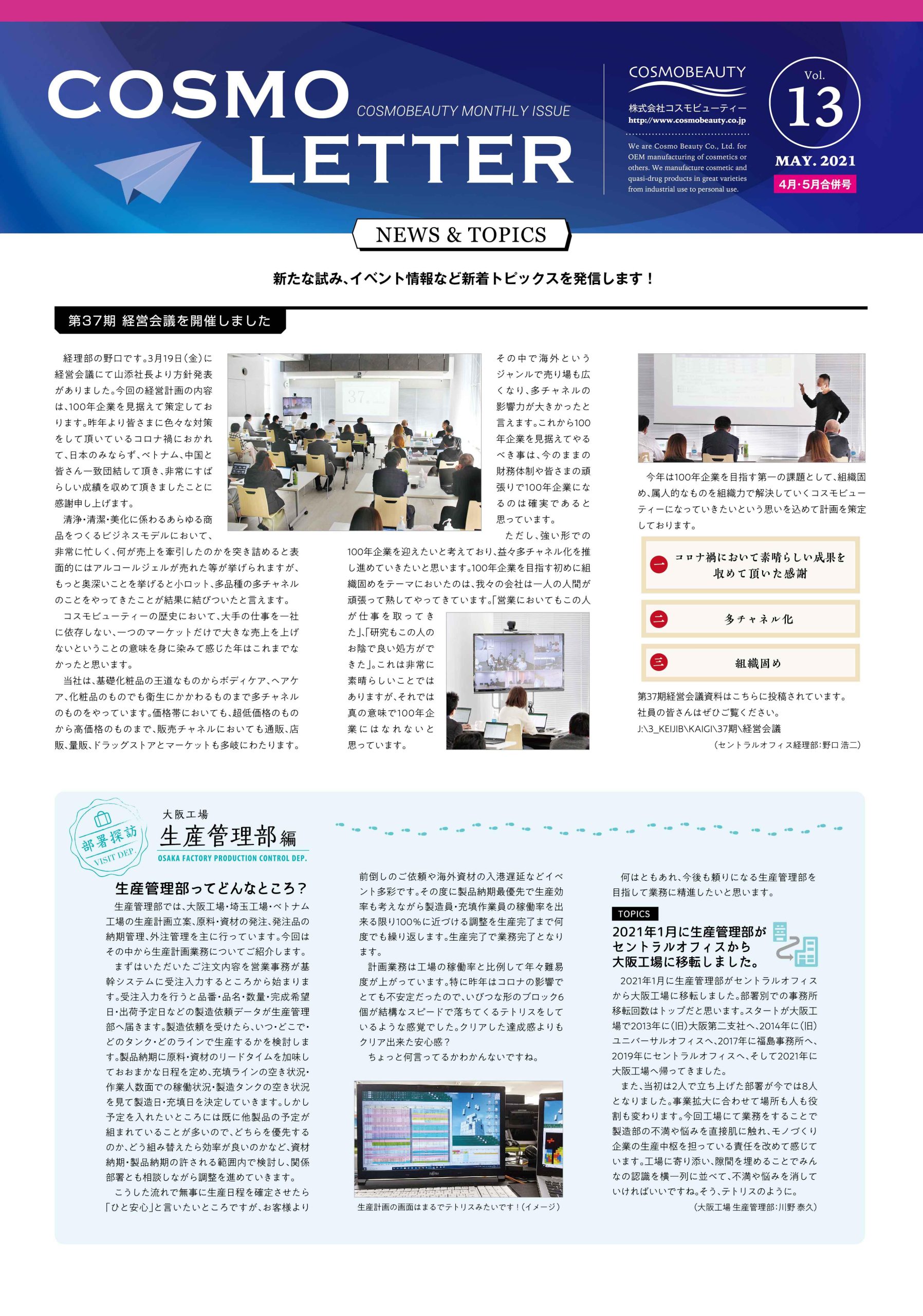 News TOP › Cosmo Letter › COSMO LETTER Vol.13 【Apr–May 2021 Combined Issue】 COSMO LETTER Vol.13 【Apr–May 2021 Combined Issue】 2021/05/01 Category Events Cosmo Letter Media Coverage NEWS Archive September 2025 (3) June 2025 (1) March 2025 (1) January 2025 (2) October 2024 (1) June 2024 (1) March 2024 (1) January 2024 (1) November 2023 (1) September 2023 (1) July 2023 (1) May 2023 (1) March 2023 (1) January 2023 (1) November 2022 (1) September 2022 (1) July 2022 (1) May 2022 (1) March 2022 (1) January 2022 (2) November 2021 (1) September 2021 (1) July 2021 (1) May 2021 (1) March 2021 (1) January 2021 (1) November 2020 (1) September 2020 (1) July 2020 (1) May 2020 (1) March 2020 (1) January 2020 (1) November 2019 (1) September 2019 (1) July 2019 (1) May 2019 (1) View All Archives Recommended Articles / Featured Articles
