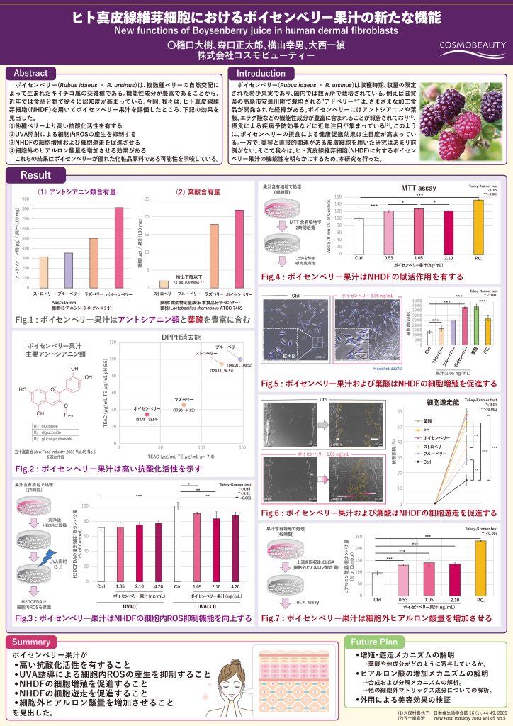 タイトル:ヒト真皮線維芽細胞におけるボイセンベリー果汁の新たな機能(New functions of Boysenberry juice in human dermal fibroblasts)