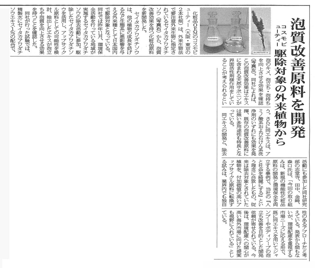 Newsお知らせ TOP › 掲載情報 › 「エアゾール&受託製造産業新聞」に記事が掲載されました。 「エアゾール&受託製造産業新聞」に記事が掲載されました。 2025/02/07 カテゴリー お知らせ イベント コスモレター 掲載情報 アーカイブ 2025年9月 (3) 2025年8月 (1) 2025年6月 (3) 2025年5月 (2) 2025年3月 (7) 2025年2月 (1) 2025年1月 (2) 2024年10月 (1) 2024年6月 (1) 2024年3月 (1) 2024年1月 (1) 2023年11月 (1) 2023年9月 (1) 2023年7月 (1) 2023年5月 (1) 2023年3月 (1) 2023年1月 (1) 2022年11月 (1) 2022年9月 (1) 2022年7月 (1) 2022年5月 (1) 2022年3月 (1) 2022年1月 (2) 2021年11月 (1) 2021年9月 (1) 2021年7月 (1) 2021年5月 (1) 2021年3月 (1) 2021年1月 (1) 2020年11月 (1) 2020年9月 (1) 2020年7月 (1) 2020年5月 (1) 2020年3月 (1) 2020年1月 (1) 2019年11月 (1) 2019年9月 (1) 2019年7月 (1) 2019年5月 (1) アーカイブを全て表示 おすすめ記事